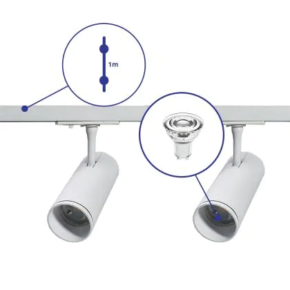 Bright Choice Set completo 1-Fase Rail 1 Metro Bianca | incl. 2x Faretti + GU10 2700K 3W Dimmerabile + Tappo Di Chiusura, Connettore di Alimentazione