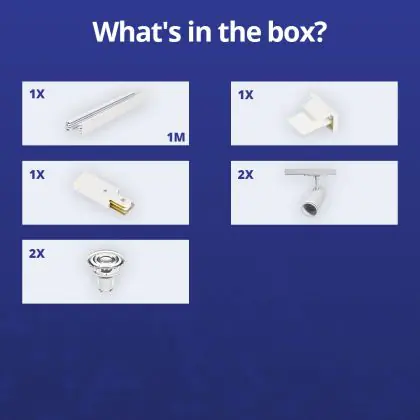 Descrizione Bright Choice Set completo 1-Fase Rail 1 Metro Bianca | incl. 2x Faretti + GU10 2700K 3W Dimmerabile + Tappo Di Chiusura, Connettore di Alimentazione