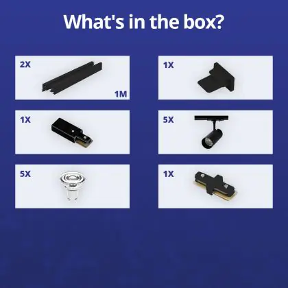 Descrizione Bright Choice Set completo 1-Fase Rail 2 Metro Nero | incl. 5x Faretti + GU10 2700K 3W Dimmerabile + Tappo Di Chiusura, Connettore di Alimentazione e I-Connettore