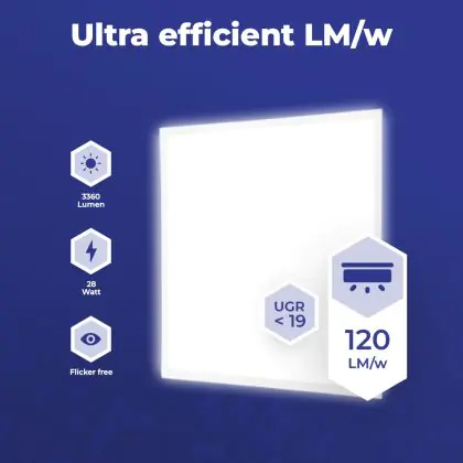 A seconda di dove verrà installato il pannello LED bisogna considerare anche l’indice di abbagliamento unificato. Infatti, per aree come scuole e uffici, servono apparecchi di illuminazione con indice UGR < 19. Questo pannello LED ha UGR < 19 - per uffici, biblioteche e aule.