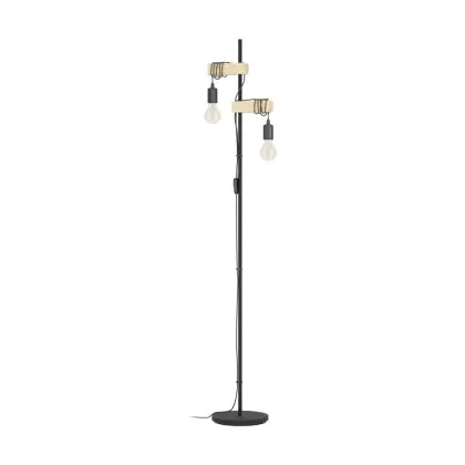 Eglo Lampada da terra Townshend Acciaio Legna Nero Marrone | IP20 - Adatto per 2x E27