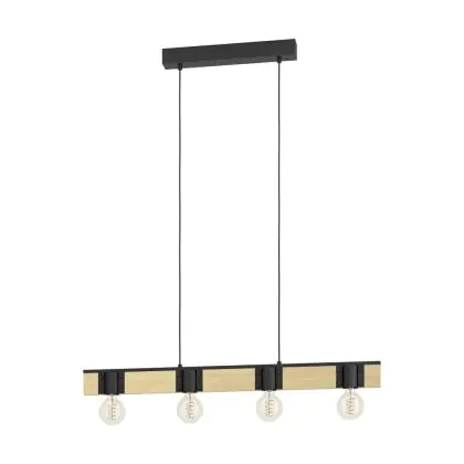 Eglo Luce Pendente Bailrigg Acciaio Legna Nero Marrone | IP20 - Adatto per 4x E27