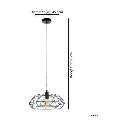 Eglo Luce Pendente Carlton 2 Acciaio Nero | IP20 - Adatto per 1x E27