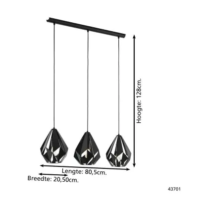 Eglo Luce Pendente Carlton 5 Acciaio Nero | IP20 - Adatto per 3x E27