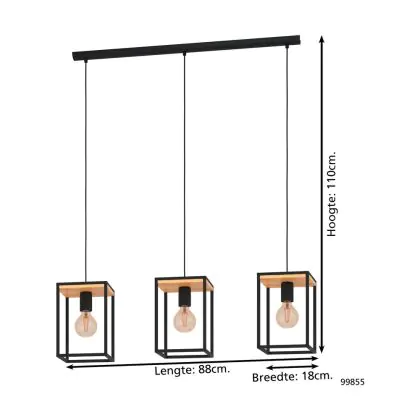 Eglo Luce Pendente Libertad Acciaio Legna Nero Marrone | IP20 - Adatto per 3x E27