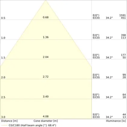 L'apertura del fascio luminoso indica l'angolo del fascio di luce proveniente da una lampada o lampadina. Si misura in gradi (D) e più piccolo è l'angolo, più piccola è l'apertura del fascio di luce.