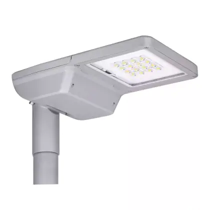 Se vuoi sostituire un vecchio apparecchio di illuminazione stradale scegli una nuova lampada LED. I LED hanno alta potenza luminosa e basso consumo energetico, come questo apparecchio che consuma solo 25 W. Ha un ciclo di vita di circa 100000 ore, che fa risparmiare anche sui costi di manutenzione e sostituzione.