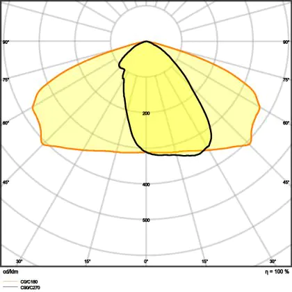 L'alloggiamento impermeabile di questa sorgente luminosa non è l'unica ragione per cui è perfetta per l'uso all'aperto. Infatti bisogna considerare anche la distribuzione della luce di questa lampada stradale, che ha apertura del fascio luminoso di 25x145° ed emette luce di colore 4000K - Bianco Freddo.