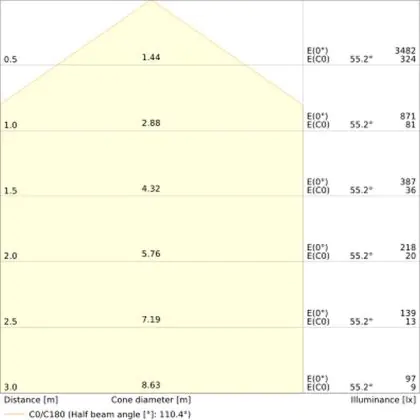 La temperatura di colore di questo apparecchio è . Per le aree in cui la luce naturale è scarsa o assente, consigliamo una temperatura di colore di 6500 Kelvin, ovvero luce bianca come quella del giorno. La luce di 4000 Kelvin (bianco freddo) è una tonalità naturale e si adatta a molte situazioni lavorative e di studio. Una temperatura di colore di 3000 Kelvin (bianco caldo) è perfetta per spazi come un ingresso, un corridoio, una tromba delle scale o una galleria.