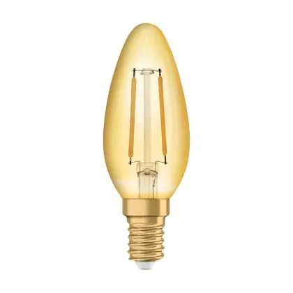 La lampada Ledvance Vintage 1906 LED E14 Candela Oro 1.5W 120lm - 824 Bianco Molto Caldo | Sostitua 15W è il sostituto perfetto per le tue vecchie lampade 15W con attacco a vite piccolo E14 grazie alla sua tecnologia LED. Passare a LED ti offrirà molti vantaggi!