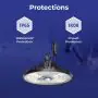 La tecnologia LED è la scelta giusta sia dal punto di vista ambientale che economico, infatti questa lampada industriale LED ha una potenza luminosa di 34000 lumen e consuma 200 watt, che può arrivare ad essere fino al 70% in meno rispetto ad altri apparecchi con tecnologie diverse. Inoltre, i LED non sostengono sostanze nocive e alla fine del loro ciclo di vita di circa 140000 ore possono essere riciclati! Questa lampada è protetta da una garanzia di 6 anni.