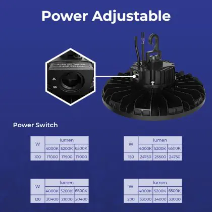 Puoi anche scegliere l'apparecchio in base all'angolo del fascio di luce, che in questo caso è di 120°. Un altro modo per scegliere una lampada industriale è attraverso la temperatura di colore della luce che emette. Per questo apparecchio è 4000K - 5200K - 6500K CCT. Generalmente, meno luce naturale c'è in una stanza, più freddo è il colore della luce artificiale che si sceglie. Per sapere come orientarsi fra le varie temperature di colore della luce, si possono usare queste linee guida: