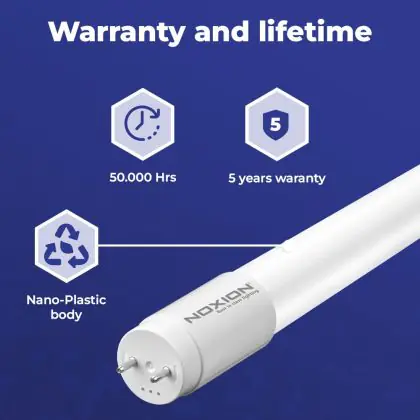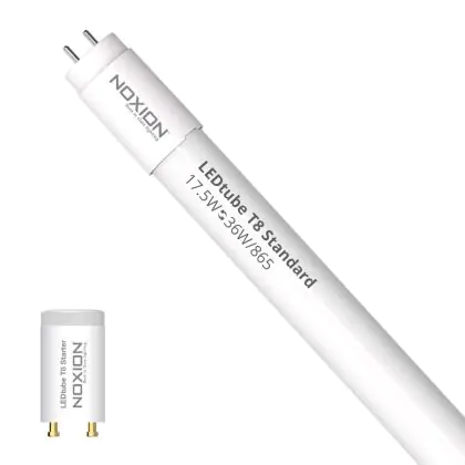Il Noxion Tubo LED T8 Avant (EM/Mains) Standard Output 15W 1800lm - 865 Luce Del Giorno | 120cm - Sostitutiva 36W è l’alternativa perfetta per il tubo fluorescente standard 36W nelle plafoniere con un reattore. Con questo tubo LED hai una garanzia di una vita media utile molto lunga e 5 anni Lampadadiretta.it di totale garanzia. .