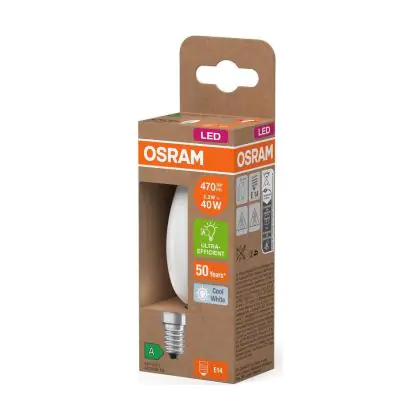 La lampada Osram LED Classic E14 Candela Filamento Ghiaccio 2.2W 470lm - 840 Bianco Freddo | Sostitutiva 40W è il sostituto perfetto per le tue vecchie lampade 40W con attacco a vite piccolo E14 grazie alla sua tecnologia LED. Passare a LED ti offrirà molti vantaggi!